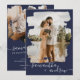 Modern minimalistisk marin blått och vitt skript bröllop med 2 fotorutnätssortering med abstraktens vattenfärgsövertäckning med fotomaskövertäckning med borstlinje.