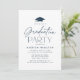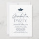 Moderna inbjudningar till studentfesten som innehåller en svart studentmössa överst i designen med "Studentfest" som visas i marin skripttypografi på vit bakgrund. Anpassa inbjudan till minsta möjliga studentfest med uppgifter om student namn och party. Studentfesten inbjudan i flottan är perfekt för att fira både gymnasiet och högskolan i student.