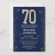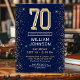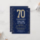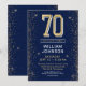 Denna fantastiska marinblå och gulda födelsedagsinbjudan för herrar till 70-årsfirande med nummer 70 i guld med modern typografi och sidor med guldglitter vore perfekt för att be människor att vara med när du firar mannens i ditt liv 70-årsdag. Den är traditionell och klassisk samtidigt som den är fräsch, modern och samtida. För att se dina unika inbjudningskort, välj "Anpassa denna mall" och skriv in din information. Det är supersmidigt!