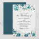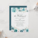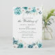 Denna moderna turkosa blomsterbröllopsinbjudan kombinerar ren typografi med mjuka akvarellvilda blommor för en raffinerad botanisk look. Den elfenbensvita bakgrunden framhäver de rika turkosa nyanserna och skapar en balanserad och elegant presentation.