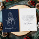 Sprid julstämning med stil med detta fantastiskt enkla men elegant designade julkort. Detta moderna julkort framhäver vackert essensen av säsongen med en ren, minimalistisk snöman-silhuett i en djupblå nyans. Den slående kontrasten i designen fångar ögat samtidigt som den förkroppsligar värmen och glädjen under högtiden. Oavsett om du kontaktar familj, vänner eller kollegor, fungerar detta kort som ett sofistikerat men genomtänkt sätt att sprida julglädje. Det är perfekt för att förmedla varma önskningar och skapa bestående minnen under denna festliga säsong. Gör dina julhälsningar minnesvärda med detta utsökta kort, designat för att ge en leende på varje mottagares ansikte.