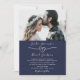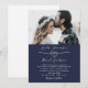Modern marinblå fotobryllop inbjudningar