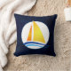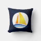 Denna marina kudde har en falsk marinläderbakgrund med en modern färgrik segelbåt i mitten. En stilren kudde för ett marint tema hem, kontor, strandhus eller pojkrum. En dekorativ kudde som denna skulle vara en genomtänkt husvärmegåva eller en gåva till vilken man som älskar segelbåtar.