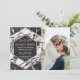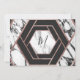 Modern, elegant och chic svart-vit marmorerad stenyta falskt tryckt roséguld hexagon, Spara-datum bröllopskort. Denna klassiska och sofistikerade design är perfekt för det trendiga och stiliga brudparet. Anpassa med eget meddelande på framsidan samt en anpassad monograminitial på baksidan. Alla fototryckdesign.