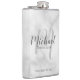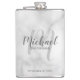 Lägg till en personlig beröring till bröllop med marskalkarna personlig. Den här kolven har personlig marskalkars namn i grått modernt typsnitt stil och monogram i ljust grått modernt typsnitt stil som bakgrund med rubrik och bröllop datum i grått modernt sans serif-typsnitt stil på vit marmorbakgrund. Perfekt för den bäste mannen, far av bruden och mycket mer. Observera att marmordetaljer simuleras i teckningen. Ingen egentlig marmor kommer att användas i produktens skapar.