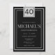 Modern Masculine Silver & Black 40th Birthday Inbjudningar