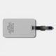 Modern mankulinbagagemärke med mörk grått monogram och vit namn på lätt grått bakgrund. Anpassa namn, initial och adress på baksidan.