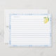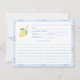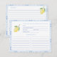 Receptkort design prydd med en enkel akvarell citron med gröna blad, mot en handmålad blå och vit kakelbakgrund (som matchar baksidan av mina bröllopsinbjudningar i samma kollektion).