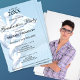 Fira en speciell milstolpe med denna moderna inbjudan till medicinsk examensfest. Designen har en stor kaducé-symbol på en mjuk blå bakgrund, som representerar det medicinska och hälsovårdsyrket. Elegant typografi skapar en stilren layout som är perfekt för examina inom medicin, omvårdnad, farmaci eller andra hälsovårdsområden.