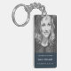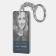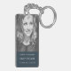 Modern, enkel nyckelring för fotominnesbilder för att fira livet för din kära i en modern minimalistisk design stil i marblått. Malldesignen kan enkelt vara personlig med ditt eget foto och din egen text för att skapa en speciell hyllning till din kära eller som en del av deras begravning, minnesstund eller firande i livet. Bilden som visas är endast avsedd som illustration för att ersättas med ett eget foto. Platshållarbilden är av en vacker kvinna med vågigt blonda hår på en spotthög och är i svartvitt i svartvitt. Om du behöver hjälp med att anpassa den här produkten kontaktar du mig med hjälp av meddelandeknappen nedan så hjälper jag lycklig.