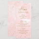 Modern meny för bröllop med rosa och guld sprutdek