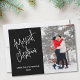 Det här moderna svarta julkortet har en fotomall som du kan ersätta med ditt fotografi och säger Merriest jul i snyggt-skripttypografi.