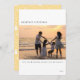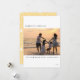 En modern design för helgdagskort har ett vågrät-foto i anpassadets mitttext fält. Sunny gult och jul mönster på andra sidan kortet.