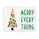 Det moderna och minimalistiska helgdag-kortet i stil har Julgran med röda och grönt boll-dekorationer, grönten "Merry Varje Sak" och vit bakgrund. Insidan av kortet kan vara personlig