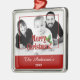 Modern Merry Christmas and Holly Custom Photo Red Julgransprydnad Metall