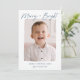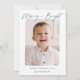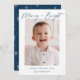 Cute, modernt fotokort för helgdag med frasen "Merry & Bright" i ett marint handskript. Lodräts foto visas med en vit gräns i ovala kant. Anpassa kortets framsida genom att lägga till en anpassningsbar hälsning med din familj namn som visas nedan. Kortet återgår till visningen med en marin bakgrund med en vit mousserande stjärna mönster.