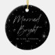 Modern helgdag-fotodekoration med "Gift och ljus" som visas i ett handskript som omges av en gräns av vita stjärnor mot en svart bakgrund. Anpassa utsmyckningens framsida genom att lägga till ditt namn och året. Baksidan av prydnadsfunktionerna i ditt foto från bröllop skapar det perfekten för din första jul som gift par.