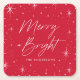 Modern Merry och Bright Script Red Helgdag Underlägg Papper Kvadrat