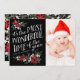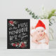 En modern design av underbar typografi som lyder "det är den mest underbara tiden på året" och som är förskönad med en gräns av söt massor av helgdag grönt och blommor.Utrymme på baksidan så att du kan lägga till ditt personliga helgdag eller fler foton om du vill. Ett vackert kort för contemporary till alla Julhälsningar.