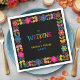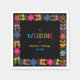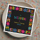 Tillsätt färgglad charm på dina serveringsbord med denna moderna mexikanska blomsterinspirerade pappersservett för bröllop, designad för att kombinera livlig kulturell skönhet med samtida elegans. Designen visar upp färgrik blomsterkonst inspirerad av traditionell mexikansk botanisk konst, arrangerad i en fräsch modern komposition. Ljuslevande blommor och dekorativa blomsterelement skapar en glad och festlig estetik som speglar värmen och energin i en mexikansk fest. Det livliga blomsterarrangemanget förhöjer din mottagningsdekor samtidigt som det skapar en glad bordssättning.