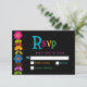 Tillsätt ett dynamiskt tryck på din bröllop-svit med den moderna mexikanska OSA kort, designad med en färgstark blommigt ram mot en fet svart bakgrund. Inspinerad av traditionell mexikansk folkkonst, riken, handdragna blommor i nyanser av rött, gult, rosa och turkos, gör det möjligt att utforma en festlig energi och kulturcharm. Den slående kontrasten förbättrar läsbarheten samtidigt som den bibehåller en sofistikerad, modern känsla. Perfekt för par tittar att förse sina uppgifter om bröllop med personlighet, arv och elegans.