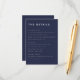The Aesthetic: Provide your guests with essential information in a regal, sophisticated style with this modern midnight blue enclosure card. This "information hub" utilizes a bold, architectural layout and our signature tonal hierarchy—featuring a crisp white "DETAILS" header and a soft light grey for the informational text. The saturated midnight background acts as a gallery-style canvas, ensuring your logistics are as beautiful as they are functional. Industrial Clarity & Design: This card is engineered for maximum organization. We’ve pre-set the information into three distinct sections: Accommodations, Reception, and Wedding Website. To maintain the "industrial-chic" hierarchy, we recommend entering your details in all caps for the first two sections; then, use lowercase for your wedding website to create a visual contrast that helps the URL stand out. The Branded Monogram: This fully customizable template features a sophisticated white "L & G" couple's monogram on the back, serving as a high-contrast signature for your suite. This designer touch ensures your stationery looks cohesive and professional from every angle. Personalization & Quality: Easily update each block while maintaining the perfectly balanced editorial grid. For a premium, non-reflective finish that enhances the deep tones of the design, I highly recommend our Matte paper stock—its heavy-weight, high-quality feel is the perfect match for the "Signature Palette" aesthetic. A Designer’s Pro-Tip: This enclosure card is designed to sit perfectly behind your invitation and RSVP card. By keeping your secondary details on this dedicated midnight card, you allow your main invitation to remain a clean work of art while adding a sophisticated layer of color to your suite.