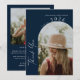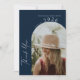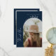 Modern Minimal 2 Photo Script Navy Blue Graduation Tack Kort
