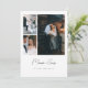 Modern Minimal 3-Photo Script Lettering Wedding Thank You Card. Customize this elegant, black and white wedding thank you card with 3 wedding photos of your choice, bride and groom names, your wedding date, location, and thank you message on the back.