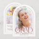 Det här lilla, röda och vita, minimalistiska studenten-tillkännagivandet har en delikat ram, två fotomallar och elegantens moderna typografi.