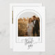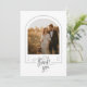 Ett elegant, modernt och minimalistiskt bröllop-tack som du har med ditt foto som beskurits till en fantastisk form och enkel anpassning på framsidan - inklusive parets datum initialer och bröllop. Inslag för text och design visas i mörk grått men kan redigeras av dig. Ta med ett liggande foto på baksidan och anpassningsbarnas meddelande och namnteckning linje. © Kimbelled, LLC