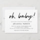 Den här eleganten, minimalistisk inbjudan till babydusch, har trendig svart typografi och ljusblå baksida.