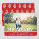 Fira säsongen med detta moderna och stilrena julkort. Kortet har ett fullständigt foto med överlagd text Be Merry. Lägg till din familjeinformation. Baksidan av kortet har ett handritat kotte-mönster på en festlig röd bakgrund.