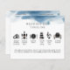 Elegant ett modernt tidslinjeprogram med mjuk och grå blå vattenfärg överst. Anpassa napkin på middagsbilden med din egen initialer. Modern, ren och enkel stil. Bilder i elegant svart, grått och tuppton. Möjlighet att anpassa informationen på baksidan för bröllopsprogrammet eller vilket välkomstmeddelande du vill ha.