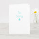 Sympatikort med en minimalistisk design med turkos blå tårdroppe och en Art Deco-stilskrift som läser 'Så ledsen'. Inuti kortet står meddelandet 'Ledsen för din förlust'. Personifiera enkelt detta kort genom att redigera malltexten. Stilrent enkelt minimalistiskt kort på en ljus vit bakgrund. Tack för att du tittar på mina designs.