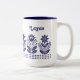 Modern Minimal Blue Folk Art Flowers Custom Name Två-Tonad Mugg