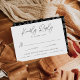 Ett enkelt botaniskt bröllop OSA med ditt OSA datum, anpassningsbarna accepterar/avvisar formuleringar och måltider. "Vänligt svar" visas i ett svart handskript. OSA kort elegant går tillbaka till visning ett svart och vitt blad mönster. Designad för samordning med vår moderna minimalistiska botaniska bröllop-samling.