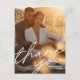 Ett modernt och minimalt överlägg med bröllop-tack som du har med Tack i handskrivet skript stil som ett stort överlägg och ditt valfria bröllop-foto. Anpassa den med ditt eget meddelande på baksidan eller ta bort texten på baksidan och lägg till en handskriven anteckning. Använda designen verktyg om du vill ta bort linjerna adress vid behov och om du vill använda klistermärken för adress.