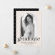 Meddela din studenten med vår chic fotot studenten. I meddelandet om snyggt studenten finns bilden av student som ramats av ett beige bågformat ram. "Student" visas i svart, modern kursiv stil. Anpassa trendigets tillkännagivande studenten genom att lägga till student namn, namn och studenten. Tillkännagivandet går tillbaka till visningen från en svart och beige cirkel mönster. Studenten-fotot är en perfekt för både högskolan och högskolan studenter.