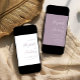 Den här enkla moderna bröllopsinbjudan innehåller dammig lavender-text på vit bakgrund. Lägg till bildens och bildens namn i snyggtens handskriftsgrafi och detaljerna i sans serif-teckensnitt. Den omvända sidan är en passande skugga av solid dammig lavender.