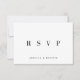Modern Bröllop OSA av typen Minimal Elegant Skriptkort Ökar bröllop-skrivbordet med det här moderna, minimalistiska och elegant-typskriptskriptet OSA kort. Det här kortet är perfekten för dina gäster att ta OSA till din speciella dag. Den rena typografin av linjer och elegant är sofistikerad, medan det visuella skriptet tillför en aning charm och personlighet. Anpassa det här kortet med namn, förfallodatum för OSA och önskade alternativ för OSA (t.ex. "Lyckligtvis accepterar", "Beklagligt avböjda" och "Antal gäster som deltar" i det visuella skriptet). Detta kort är en snyggt och ett funktionellt sätt att samla in gästernas RSVP och säkerställa en smidig planering processaa.