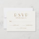 En modern, minimalistisk utformning för dina bröllop OSA. Eleganten är ett lätt elfenben på framsidan med en modern guld-typografi. Baksidan är en pulserande grönt med initialer i guld
