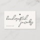 Minimalistiskt affärskort och elegant med liten svart hjärtillustration och handskriven snyggt "handgjord smycken" på ljusbakgrund. Perfekt för handgjorda företag, onlineer och små eller stora företag. Enkel design med social-medieikoner. Du kan anpassa korten med text och qr-kod. Lägg till namn, titel, medieferens för social och webbplats adress.