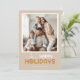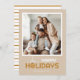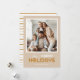 Det här moderna minimifotokortet för julgranar innehåller texten "Glad helg" och är utmärkande med ett runt prydnadsföremål. Kortet är designat med guld, vitt och brunt färgad.