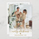 Elegant Minimal Gold Script 5 Photo Merry Christmas Holiday Card. Share the joy of the season with this clean and stylish holiday card, featuring a graceful hand-lettered Merry Christmas in whimsical gold swash tail font calligraphy script layered over your main photo on the front. The reverse side offers room for your custom holiday message, highlighted with a charming little heart doodle, plus a 4 photo collage layout — creating a beautiful 5-photo design overall.