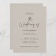 Modern, enkel, minimal typografi med fet naturbeige/grått-bröllopsinbjudan, detaljer och QR-kodkort. Med modern elegant, typografi och strimlad bakerdesign. Färg kan anpassas.