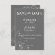 Fånga det väsentliga i tidlös sofistikering med vår krävande bröllopssvit. Det här sparar datumkortets exuderklass och stil, när det har skapats med en mjuk grått-bakgrund och lagts till med modern vit text. Minimalistisk men fängslande, den har en multipelsprej av mousserande diamanter som är spridda i hörnet och ger dig en aning glamor och lyx till din speciella dag. Skapat av Farmhouse Press.