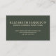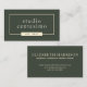 Ett modernt affärskort för minimalistisk professionell. Snyggten och den enkla designen har ett oliv grönt kort för mörk med gräddgeometriska accenter och typografi. Anpassa fronten med ditt företag namn och det år du etablerat, medan baksidan innehåller ditt namn, din titel, mobila, din e-post och webben adress.