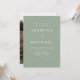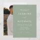 Enkelt, elegant bröllop-inbjudningar med ett vitt, handskrivet skript blandat med modernt skript mot en bakgrund av en sage grönt. Anpassa den minimalistiska bröllopsinbjudan med ditt namn och uppgifter om bröllop. Inbjudan återgår till visningen av förlovningen för fullt-utfall i lodrät. Chicens bröllopsinbjudningar på grönten är perfektens val för det moderna bröllop.