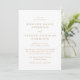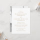 Lägg till lite lyx i bröllop med den här fantastiska inbjudan till guld bröllop som innehåller fet guld-bokstäver, nyttigt calligrafi-accents och en skarp vit bakgrund. Perfekt för både formellt och avslappnad firande, den minimalistiska utformningen blandar klassiskt elegans med modern sofistikering. Baksidan visar parets förlovning av lodrät och skapar en personlig och hjärtfull beröring till ditt speciella meddelande. Anpassade till kostym på ditt unika bröllop-tema. Den här inbjudan belyser på ett utmärkt sätt dina detaljer med tidlös stil och strålande charm.