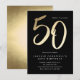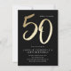 Modern minimalistisk 50-års födelsedagsfest inbjudan har stilren falsk guld folie nummer handskriven script 50 och din fest detaljer i klassisk serif teckensnitt på svart bakgrundsfärg, enkel och elegant, bra överraskning vuxen milstolpe födelsedags inbjudan för män och kvinnor. Den svarta bakgrundsfärgen kan ändras till valfri färg du väljer.